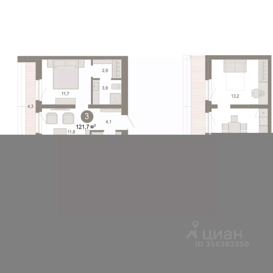 Двухуровневая квартира с кухней-гостиной и тремя спальнями в квартале "Нефть". Особенности планировки: двухуровневая, свободная планировка, терраса на крыше.