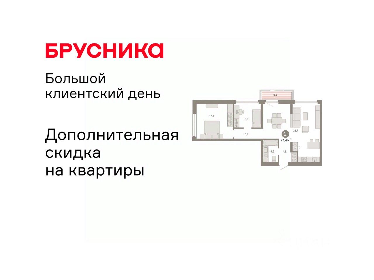 Квартира с кухней-гостиной и двумя спальнями в квартале "Нефть". Особенности планировки: балкон, предчистовая отделка, разнесённые спальни.