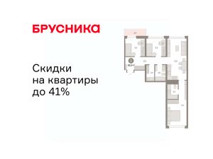 Квартира с кухней-гостиной и тремя спальнями в квартале "Нефть". Особенности планировки: мастер-спальня, окна на две стороны, предчистовая отделка.