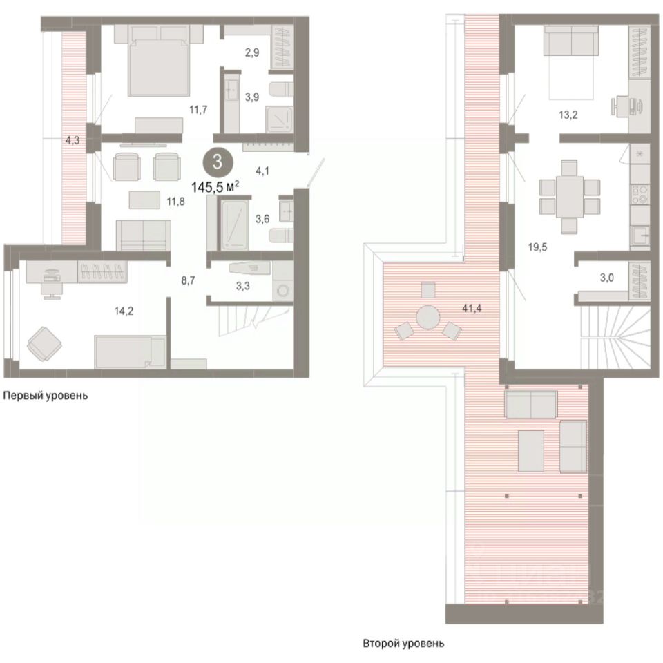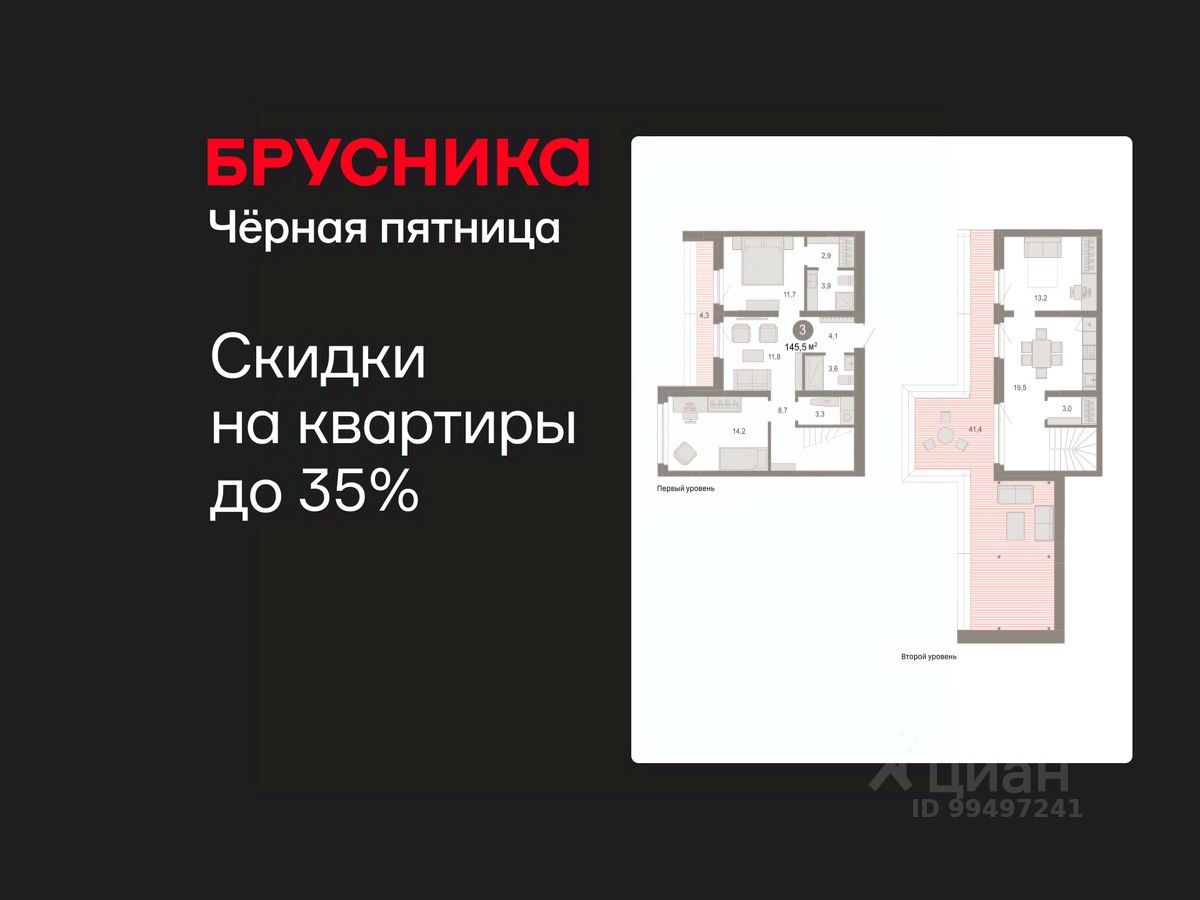 Двухуровневая квартира с кухней-гостиной и тремя спальнями в квартале "Нефть". Особенности планировки: двухуровневая, свободная планировка, терраса на крыше.