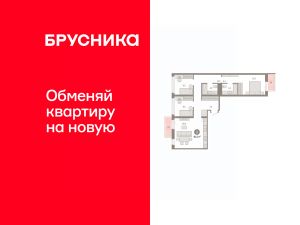 Квартира с кухней-гостиной и тремя спальнями в квартале "Нефть". Особенности планировки: балкон, окна на две стороны, предчистовая отделка, разнесённые спальни.