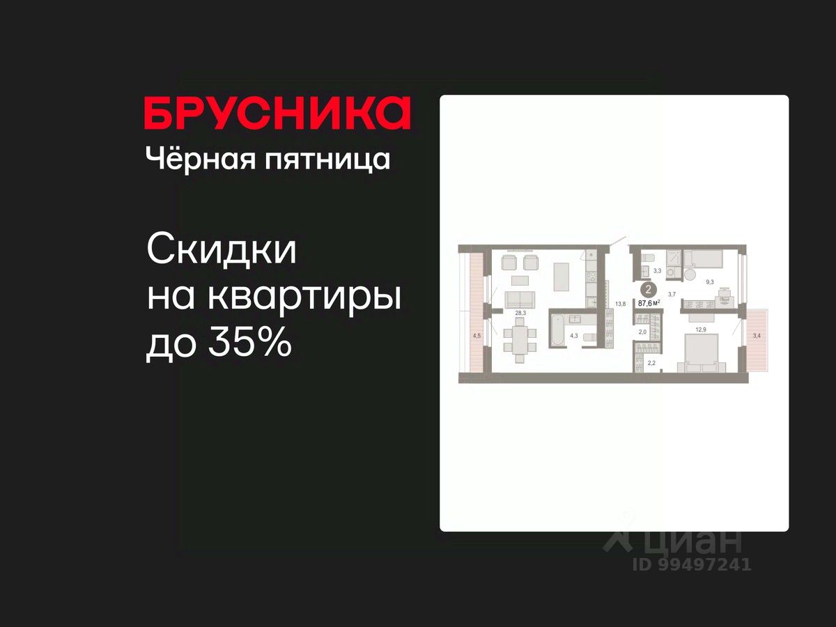 Квартира с кухней-гостиной и двумя спальнями в квартале "Нефть". Особенности планировки: окна на две стороны, второй санузел, гардеробная, вид во двор, предчистовая отделка, балкон, терраса на крыше.