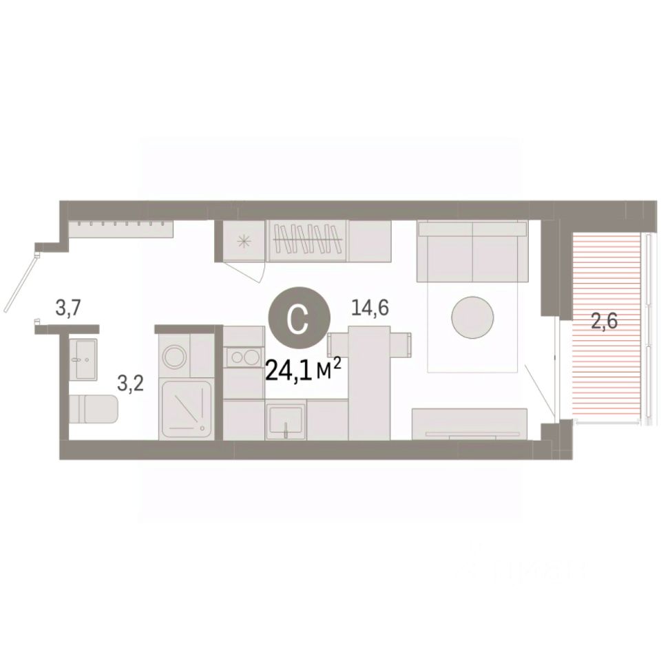 Студия в квартале "Нефть". Особенности планировки: лоджия, предчистовая отделка.