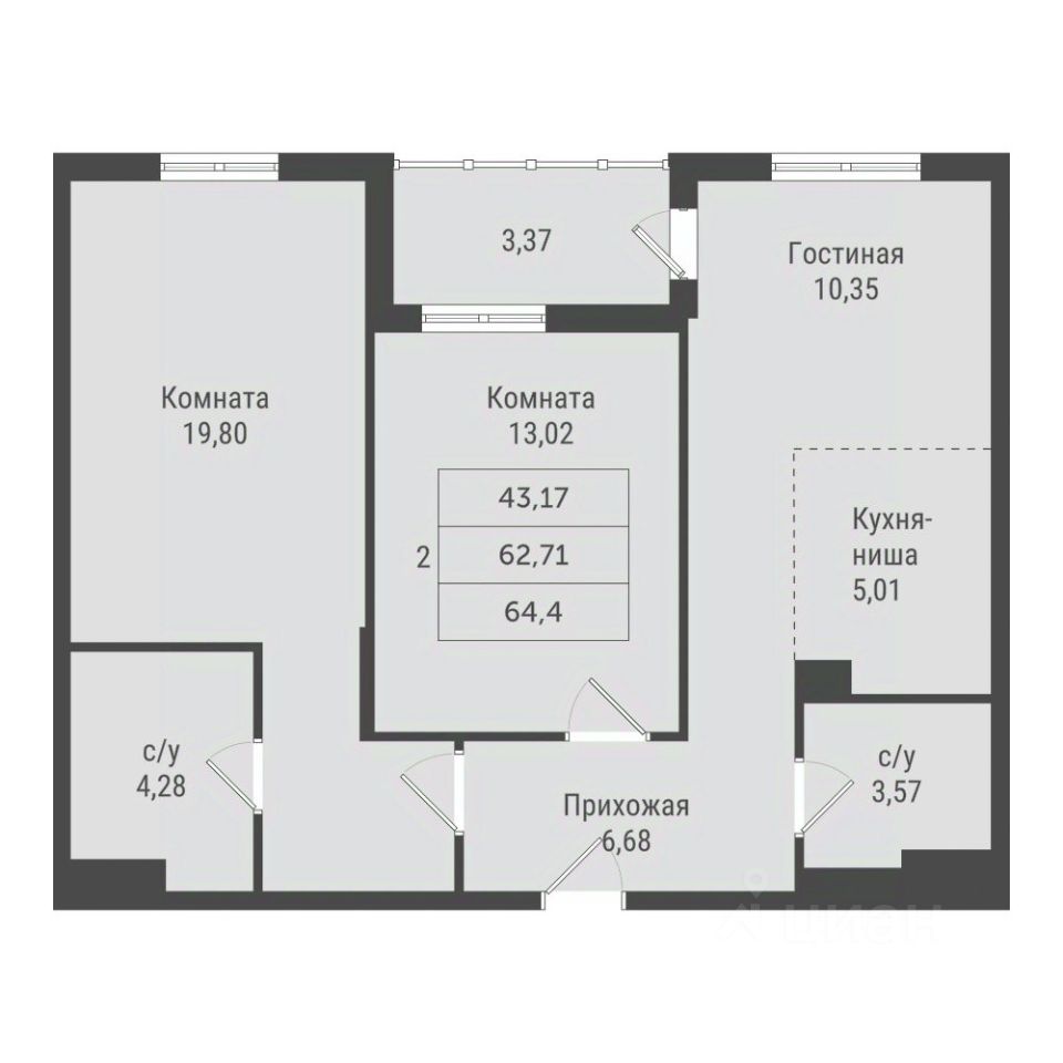 Продаётся 2-комнатная квартира в строящемся доме (1 этап (Игоря Киртбая, 39)), срок сдачи: IV-кв. 2025, общей площадью 64.4 кв.м., на 8 этаже. Новый жилой комплекс "City Park" от Группы компаний "ЗапСибИнтерСтрой" расположен в 51 микрорайоне г. Сургут Ханты-Мансийского АО на ул. Игоря Киртбая.