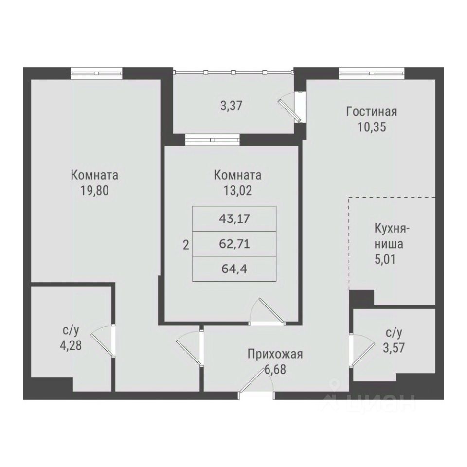 64,4 м²