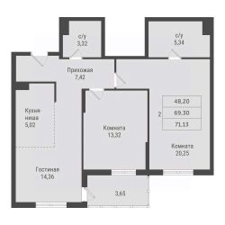 Продаётся 2-комнатная квартира в строящемся доме (1 этап (Игоря Киртбая, 39)), срок сдачи: IV-кв. 2025, общей площадью 71.13 кв.м., на 1 этаже. Новый жилой комплекс "City Park" от Группы компаний "ЗапСибИнтерСтрой" расположен в 51 микрорайоне г. Сургут Ханты-Мансийского АО на ул. Игоря Киртбая.