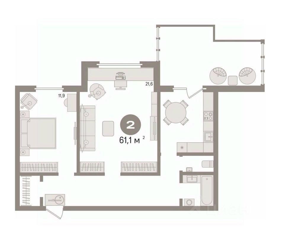 Общая площадь 61,1 кв.м