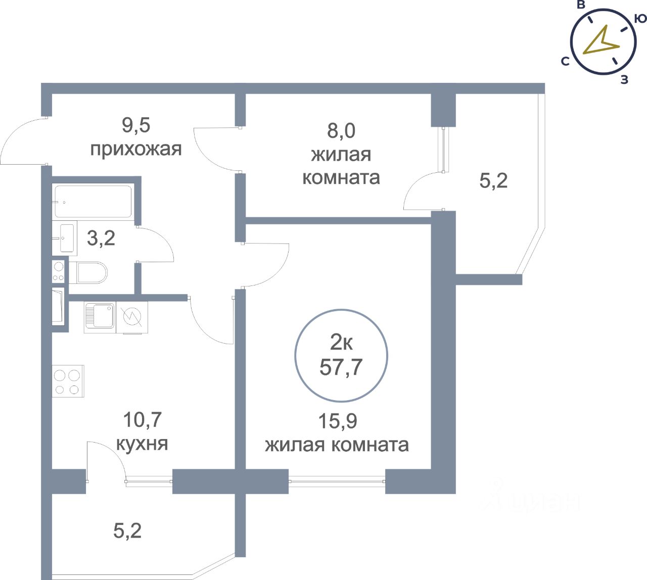 Общая площадь57,7 м²