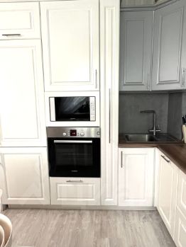 • На кухне встроенная техника: холодильник, морозильная камера, микроволновая печь, кофе машина.