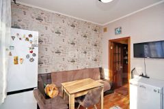 В квартире выполнен качественный ремонт: на полу линолеум, стены выровнены и оклеены, установлены пластиковые окна, балкон остеклен. Приятная цветовая гамма свежего ремонта в спальне и детской. Хорошая входная дверь. Санузел отделан кафелем. При продаже остается качественная мебель и техника(частично) . Соседи спокойные, по ночам не беспокоят.