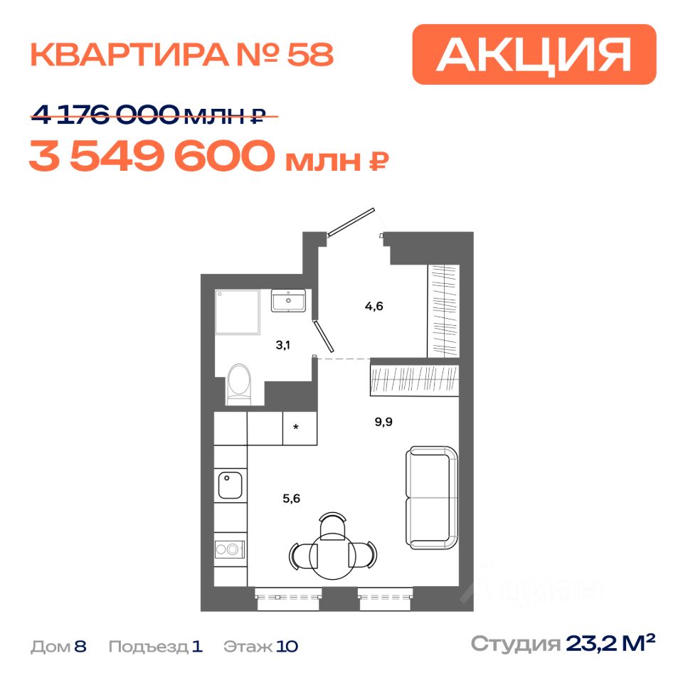 Продаётся квартира-студия 23,2 м² в жилом квартале "Столица" в микрорайоне 30А. Планировка удобна для ежедневной жизни: есть чёткое разделение приватной и общей зон, место под системы хранения и зону кухни/гостиной. Квартира с отделкой (доступны различные виды отделки: черновая, стандарт, комфорт) от застройщика: при вариантах "Стандарт" и "Комфорт" можно заехать сразу после сделки, при черновой отделке — реализовать свой проект без демонтажа чужого ремонта. Этаж: 10.