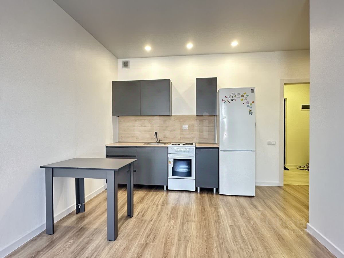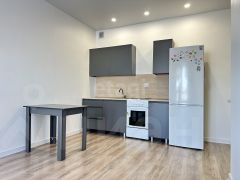 Продается квартира 1+ в новом доме. Кухня-гостиная 17,4 м2, 2 ниши под гардеробные, спальня 11,4 м2. В квартире выполнен качественный ремонт в светлых пастельных тонах: обои под покраску, на полу ламинат, санузел отделан кафельной плиткой, установлена сантехника. Данный комплекс состоит из 11 домов и строится на участке кедрового леса, который будет использован как парковая зона с велодорожками. Планируется: место для проведения семейных праздников, своя большая библиотека, ремонтные станции для велосипедов, многоуровневая парковка (двор без машин), детская экоплощадка и спортивное оборудование, озеленение реликтовыми растениями, новый детский сад и школа, на территории комплекса площадка для выгула собак и душевая для их лапок в подъезде.