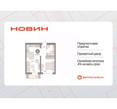 1-комн. квартира с предчистовой отделкой в ЖК "Новин" на 5 этаже. Общая площадь: 44.52 кв.м., жилая: 12 кв.м., площадь просторной кухни-гостиной: 21.2 кв.м. Все окна выходят на одну сторону. В квартире один балкон, один совмещенный санузел. Высота потолков 2.7 м.