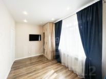 В квартире выполнен капитальный, современный и стильный ремонт, полы покрыты ламинатом(по всей квартире в один уровень), хорошие двери, натяжные потолки, санузел выложен кафелем. Квартира очень светлая и комфортная, полностью готовая к проживанию. При продаже мебель и техника остаётся.