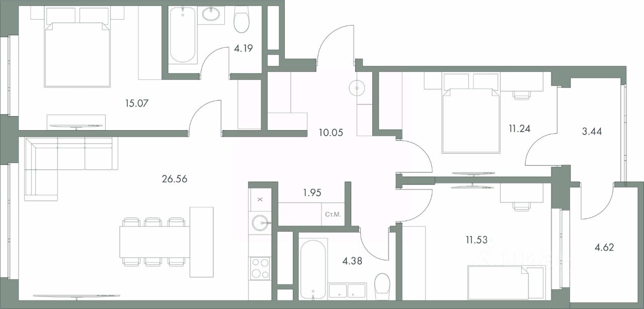 Гранд-квартал "Гринкод" - новый масштабный проект опытного застройщика "Азбука development". В нем собраны наши лучшие практики и современные, стильные решения, чтобы создать среду для счастливой семейной жизни. Квартал расположен в 44 микрорайоне Сургута, в границах улиц Билецкого, Шидловского, Крылова и Бокова, рядом с лесным массивом. Благодаря насыщенной инфраструктуре и 8 га леса рядом, в гранд-квартале активная жизнь находится в балансе с возможностью поймать мгновение. Одно из уникальных решений, направленных на восстановление сил и энергии жителей - эко-тропа внутри лесного участка, где все деревья сохранили свою первозданную силу и красоту. Свежий воздух, пение птиц, красота северной природы - это мощные источники для восполнения сил. В пешей доступности есть действующие детские сады, школы, частные клиники, пункты выдачи, крупный ТРЦ, развивающие и спортивные секции. В стадии реализации спортивный комплекс - ледовый дворец. Помимо имеющейся инфраструктуры в каждом доме на первом этаже будут расположены коммерческие помещения в аренду и уже сейчас ведется работа по подбору арендаторов с деятельностью, которая будет полезна будущим жителям. Все дома в проекте монолитно-кирпичные с подземным паркингом и кладовыми. Девять этажей, до шести квартир на площадке позволит создать более комфортную и приватную среду для проживания, а современная и стильная архитектура украсит микрорайон и станет точкой притяжения настоящих эстетов. У каждого дома свой закрытый двор с круглосуточной охраной и видеонаблюдением. Ландшафтное озеленение, прогулочные аллеи, территории спорта и летний кинотеатр, площадки для игр и развития самых маленьких жителей квартала. Ассортимент планировочных решений позволяет выбрать необходимый сценарий жизни под любой запрос: квартиры с террасой, мастер-спальней, постирочной и гардеробом, а панорамные окна и высокие потолки сделают сценарий особенным.