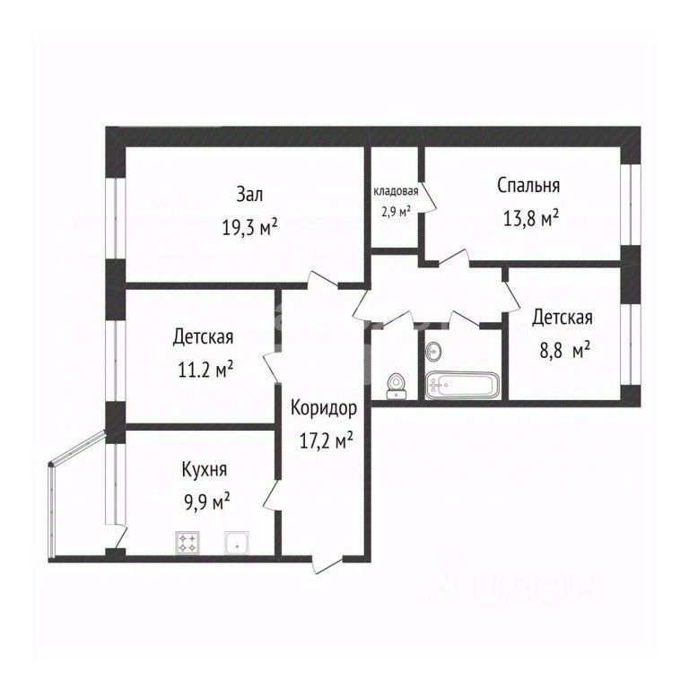 Площадь квартиры позволяет реализовать любые задумки и создать уютное пространство для жизни вашей семьи;
