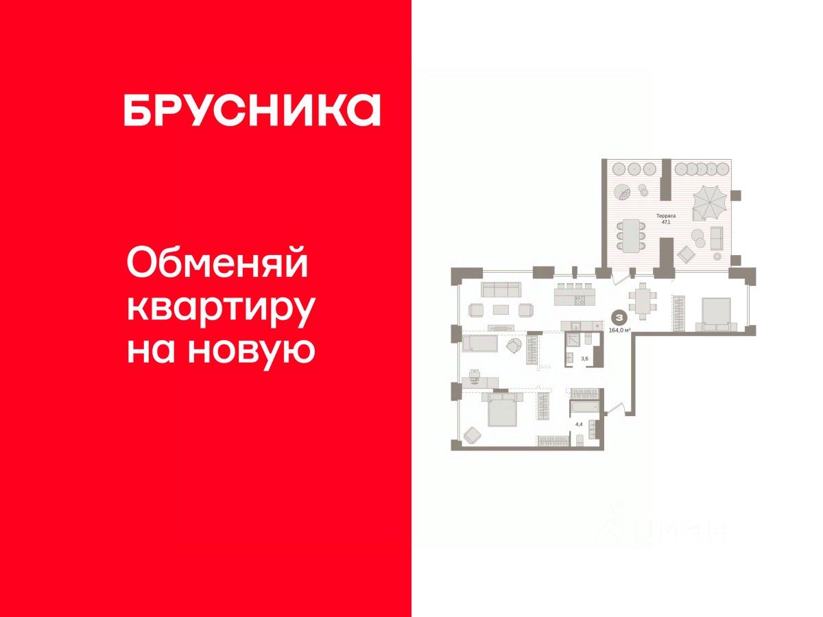 Трехкомнатная квартира с предчистовой отделкой в ЖК "Гудзон" на 4 этаже. Общая площадь: 163.97 кв.м., жилая: 55 кв.м., площадь просторной кухни-гостиной: 30 кв.м. Квартира без проходных комнат, окна выходят нa три cтopoны дома. В квартире один балкон, два совмещенных санузла. Наличие в квартире террасы размером 47.1 кв.м. открывает возможность для обустройства дополнительной площади. Высота потолков 2.72 м.