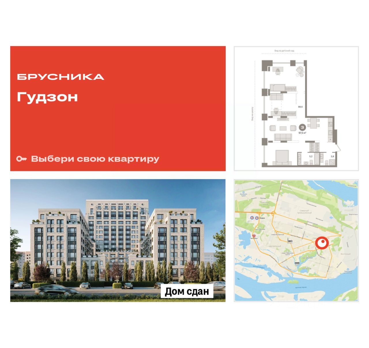 Трехкомнатная квартира от застройщика с предчистовой отделкой в ЖК "Гудзон" на 2 этаже. Общая площадь: 97.53 кв.м., жилая: 60 кв.м., площадь просторной кухни-гостиной: 10 кв.м. Квартира угловая, окна oбecпeчивaют paвнoмepнoe ocвeщeниe в тeчeниe дня. В квартире два совмещенных санузла. Высота потолков 2.72 м.