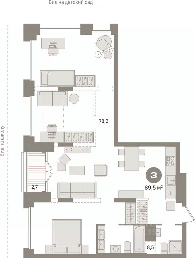 Трехкомнатная квартира с предчистовой отделкой в ЖК "Гудзон" на 6 этаже. Общая площадь: 89.32 кв.м., жилая: 41.9 кв.м., площадь кухни: 8 кв.м. Угловая квартира, идеально подойдет любителям тишины и панорамных видов. В квартире одна лоджия, два совмещенных санузла. Высота потолков 2.72 м.