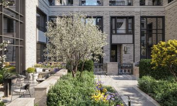 В проекте выражена идея интровертности здания: стены дома устроены вокруг внутреннего двора, который находится в центре композиции. Также здесь расположены две пешеходные арки, через которые осуществляется сквозной доступ во двор с улицы и главный вход в здание. Двор носит полуприватный характер и становится камерным лобби для жителей и гостей. Он полностью закрыт от машин. Во дворе высажены уже взрослые деревья, кустарники, цветы и злаковые травы, постелен газон. Растения размещены в грунте и дополнительно расставлены в вазонах. Во дворе предусмотрены места отдыха и прогулочные дорожки. Рядом с домом спроектирована большая детская площадка для детей разных возрастов с лестницами, горками и качелями, установлены уличные тренажёры для воркаута. #2wg19v
