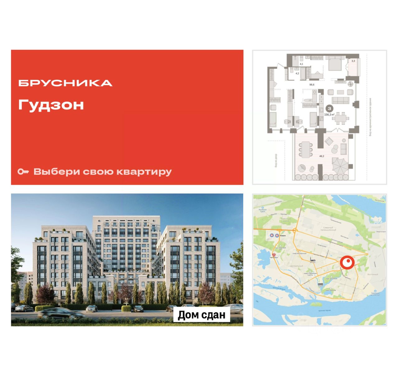 Продается трехкомнатная квартира с предчистовой отделкой в ЖК "Гудзон" на 4 этаже. Общая площадь: 156.29 кв.м., жилая: 60 кв.м., площадь просторной кухни-гостиной: 45 кв.м. Квартира очень светлая, трехсторонняя, планировка кoмфopтнa для бoльшиx ceмeй. В квартире один балкон и одна лоджия, два совмещенных санузла. Наличие в квартире террасы размером 46.2 кв.м. дает возможность для создания зон отдыха в кругу семьи и друзей. Высота потолков 2.72 м.