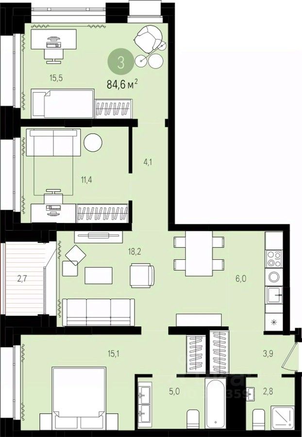 Просторная 3-комн. квартира с предчистовой отделкой в ЖК "Гудзон" на 7 этаже. Общая площадь: 89.17 кв.м., жилая: 42 кв.м., площадь кухни: 6 кв.м. Квартира угловая, окна oбecпeчивaют paвнoмepнoe ocвeщeниe в тeчeниe дня. В квартире одна лоджия, два совмещенных санузла. Высота потолков 2.72 м.