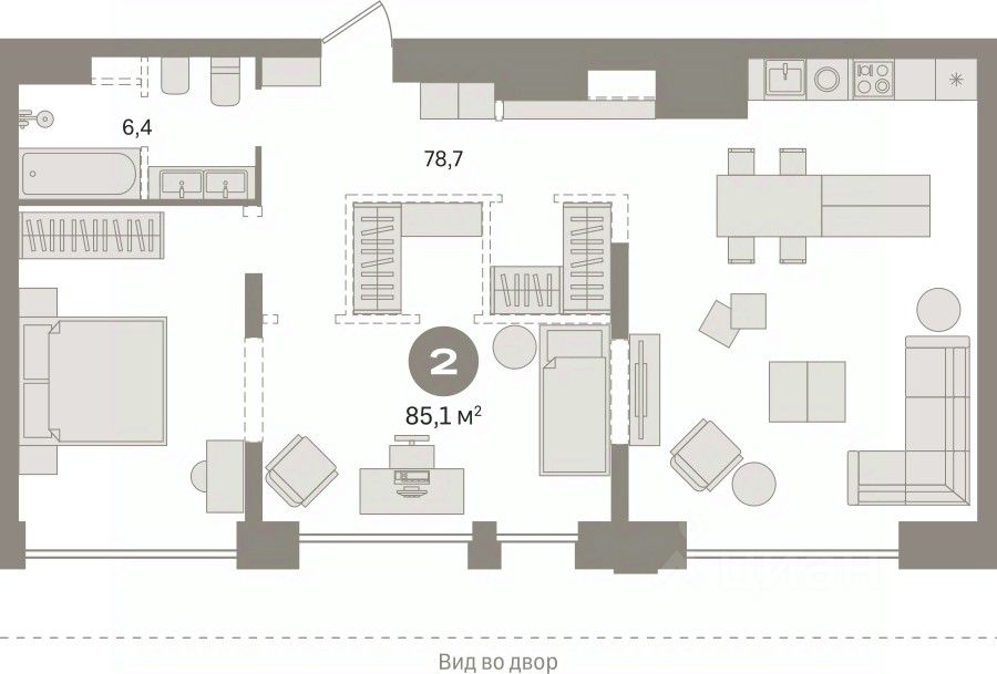 Двухкомнатная квартира с предчистовой отделкой в ЖК "Гудзон" на 11 этаже. Общая площадь: 85.08 кв.м., жилая: 60 кв.м., площадь просторной кухни-гостиной: 20 кв.м. Комнаты изолированные, все окна выходят на одну сторону. В квартире один совмещенный санузел. Высота потолков 2.72 м.