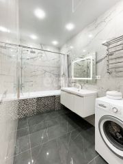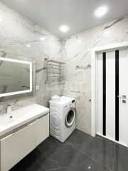 На стенах декоративная штукатура, которая при разном освещении играет разными красками. Точечное освещение по всей квартире, установлен современный кухонный гарнитур со встроенной техникой (посудомоечная машина, варочная панель, духовой шкаф, микроволновая печь). В квартире грамотно продумана система хранения вещей, в прихожей вместительный шкаф купе. Окна квартиры выходят на две стороны, балкон застеклен. На этаже всего 4 квартиры. Дом располагается в самой развитой части города, во дворе новый детский сад, строится школа, удобная транспортная развязка, магазины и торговые центры в шаговой доступности.