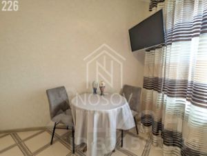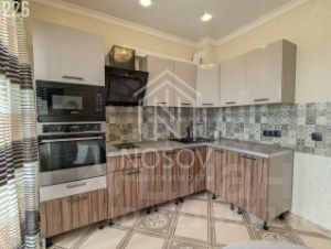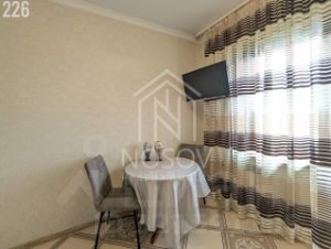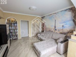 — Ремонт: Капитальный дизайнерский ремонт. Натяжные потолки (матовые в комнатах, глянцевые в ванной/коридоре) с точечным освещением. Стены выровнены и оклеены обоями. Полы: линолеум (коридор, спальня), ламинат (зал), плитка (кухня, ванная, уборная)