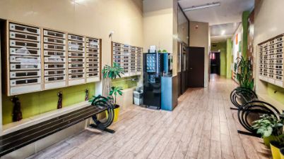 В доме - 4 лифта. В подъезде очень красиво: есть лавочки для ожидания, цветы и кофейный аппарат.