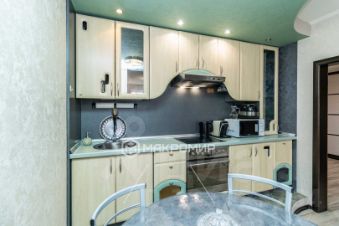 Потолок - подвесной в коридоре (гипсокартон) , в комнатах идеально зашпаклеван и покрашен, ни одной трещины. Стены выровнены под маяк, все углы 90 гр, поклеены очень качественные обои. Полы выровнены идеально по уровню, по всей квартире постелен ламинат. В санузлах полы и стены - хорошая качественная плитка.
