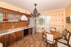 Просторная четырехкомнатная квартира в кирпичном доме предлагает комфортное проживание для семьи. Площадь комнат от 20 до 25 м², высота потолков 2,75 м обеспечивает ощущение простора. Планировка с окнами на две стороны гарантирует хорошую инсоляцию в течение дня. Толстые кирпичные стены обеспечивают высокую шумоизоляцию между квартирами, поддерживают стабильный микроклимат: зимой сохраняют тепло, летом защищают от перегрева. Санузел раздельный, выполнен косметический ремонт: стены окрашены в нейтральные тона, уложен ламинат 32 класса. Встроенная кухонная мебель и бытовая техника (посудомоечная машина, духовой шкаф, плита, вытяжка) остаются новым владельцам. Расположение отличается развитой инфраструктурой: в пешей доступности (37 минут) находятся детские сады "Аленький цветочек" и "Бусинка", прогимназия и гимназия имени Ф. Салманова, школа 19. Через дорогу — детская и взрослая поликлиники, аптека. В 5 минутах ходьбы — парк "За Саймой" с прогулочными аллеями и детскими площадками. Остановки общественного транспорта в 200 м соединяют район с центром города, рядом выезд на основные магистрали.