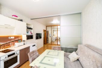 В связи с переездом Продаем прекрасную 1+ ком. квартиру в прекрасном районе города. Квартира очень теплая, слышимость минимальная. В квартире выполнен хороший ремонт: на полу ламинат, стены выровнены и оклеены, установлены пластиковые окна, балконы остеклены. Хорошая входная дверь. Кухня-гостиная зонирована и разделена на два помещения.