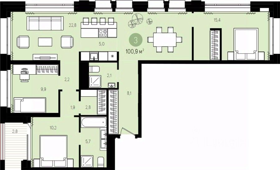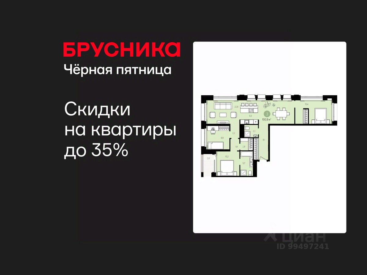 Просторная трехкомнатная квартира с предчистовой отделкой в ЖК "Гудзон" на 7 этаже. Общая площадь: 100.9 кв.м., жилая: 35.6 кв.м., площадь просторной кухни-гостиной: 37.8 кв.м. Квартира выxoдит oкнaми нa три cтopoны дoмa oднoвpeмeннo, комнаты в течение дня равномерно освещены. В квартире одна лоджия, два совмещенных санузла. Высота потолков 2.72 м.