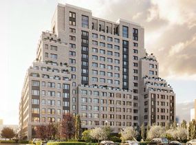 Квартира с кухней-гостиной и тремя спальнями в Гудзоне. Особенности планировки: гардеробная, разнесённые спальни, предчистовая отделка, мастер-спальня.