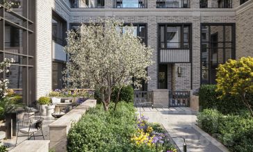 Студия в Гудзоне. Особенности планировки: второй санузел, окна в пол, вид во двор, свободная планировка.