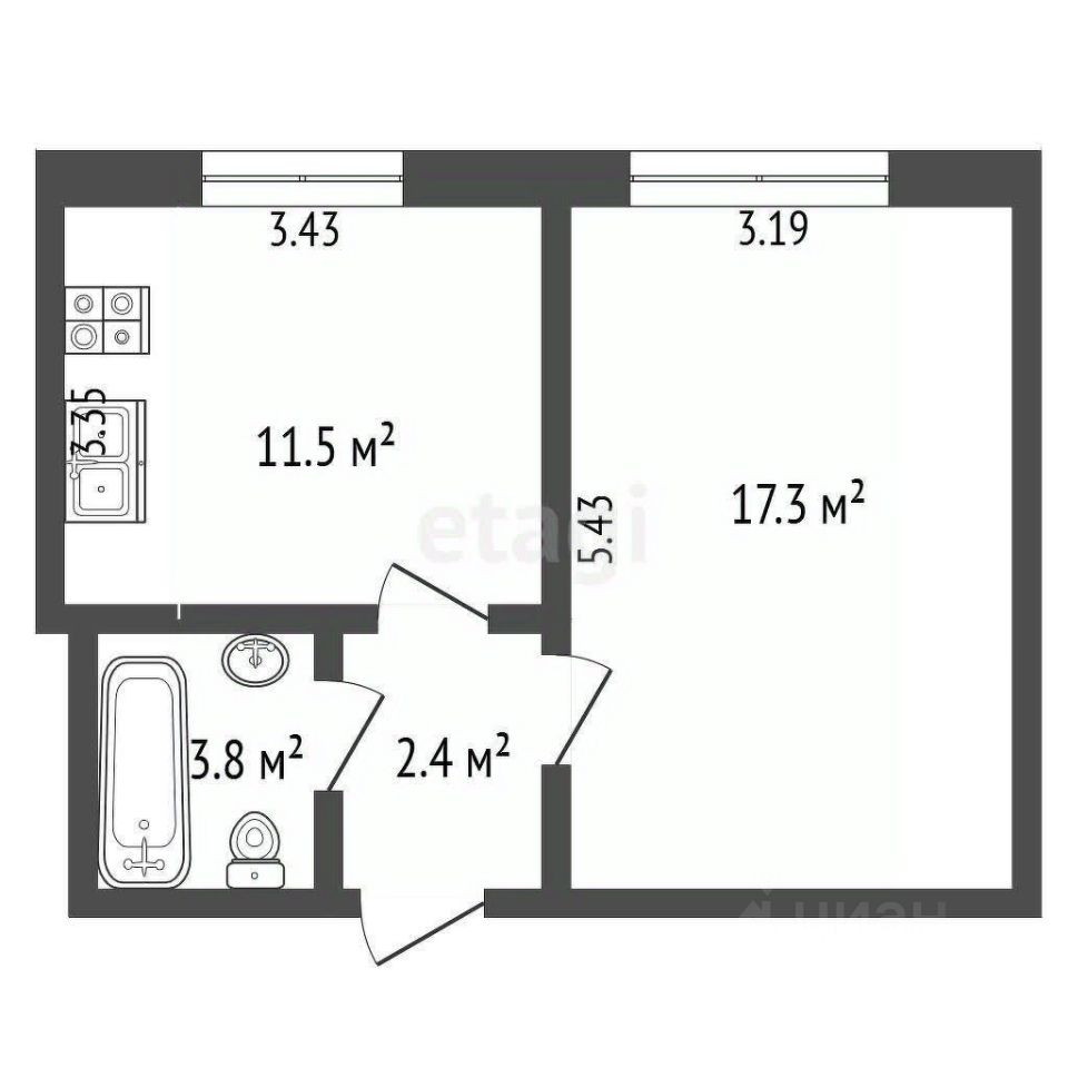 Общая площадь: 35 м² — одна из самых больших среди "однушек"