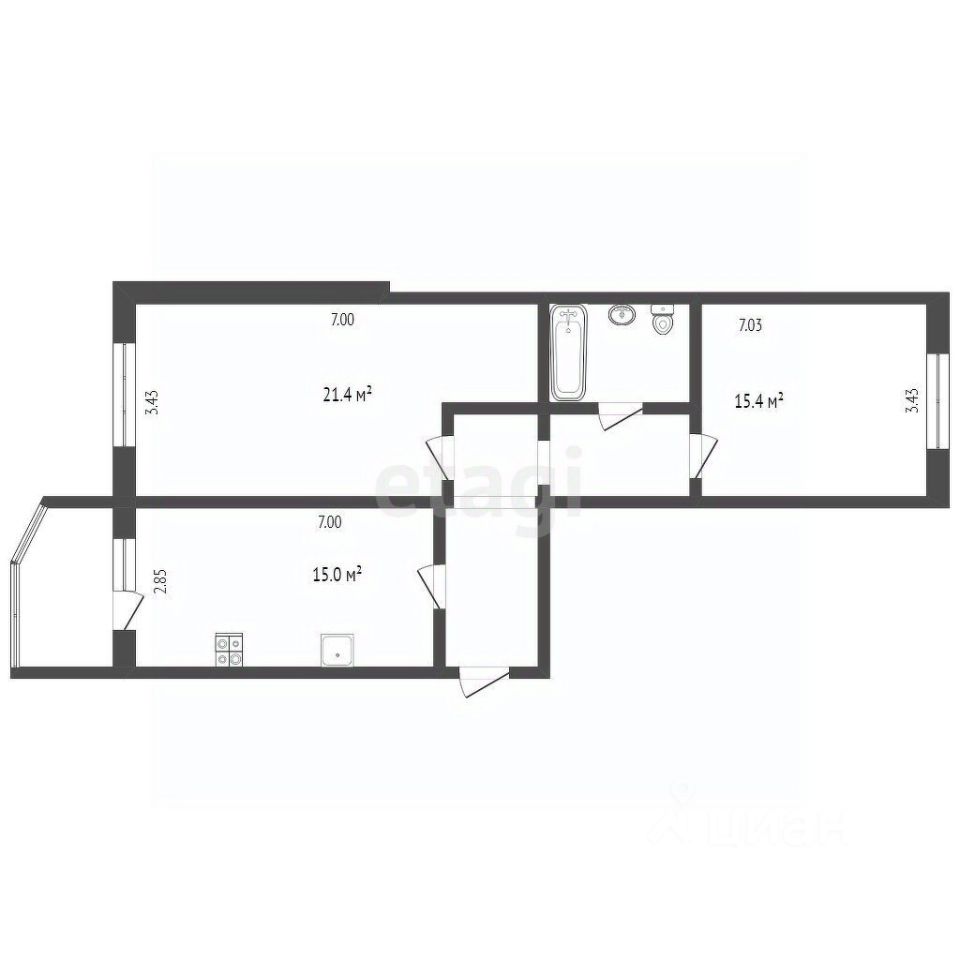 Представляем к продаже квартиру формата 2"+". Квартира состоит из просторной кухни-гостиной, двух полноценных комнат, совмещенного санузла и балкона. В квартире выполнен косметический ремонт: стены оклеены обоями, на полу линолеум, в санузле плитка. При продаже остается вся мебель, встроенный кухонный гарнитур с бытовой техникой.