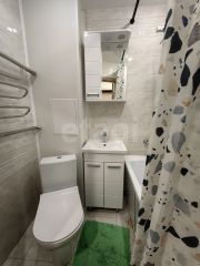 В квартире сделан свежий ремонт. Полы залиты (делали основательно), стены выровнены. Окна - пластиковые. Батареи заменены. На полу - ламинат. Потолки - натяжные. Кухня - новая со встраиваемой техникой. Санузел выложен плиткой. В комнате - тёплый пол.