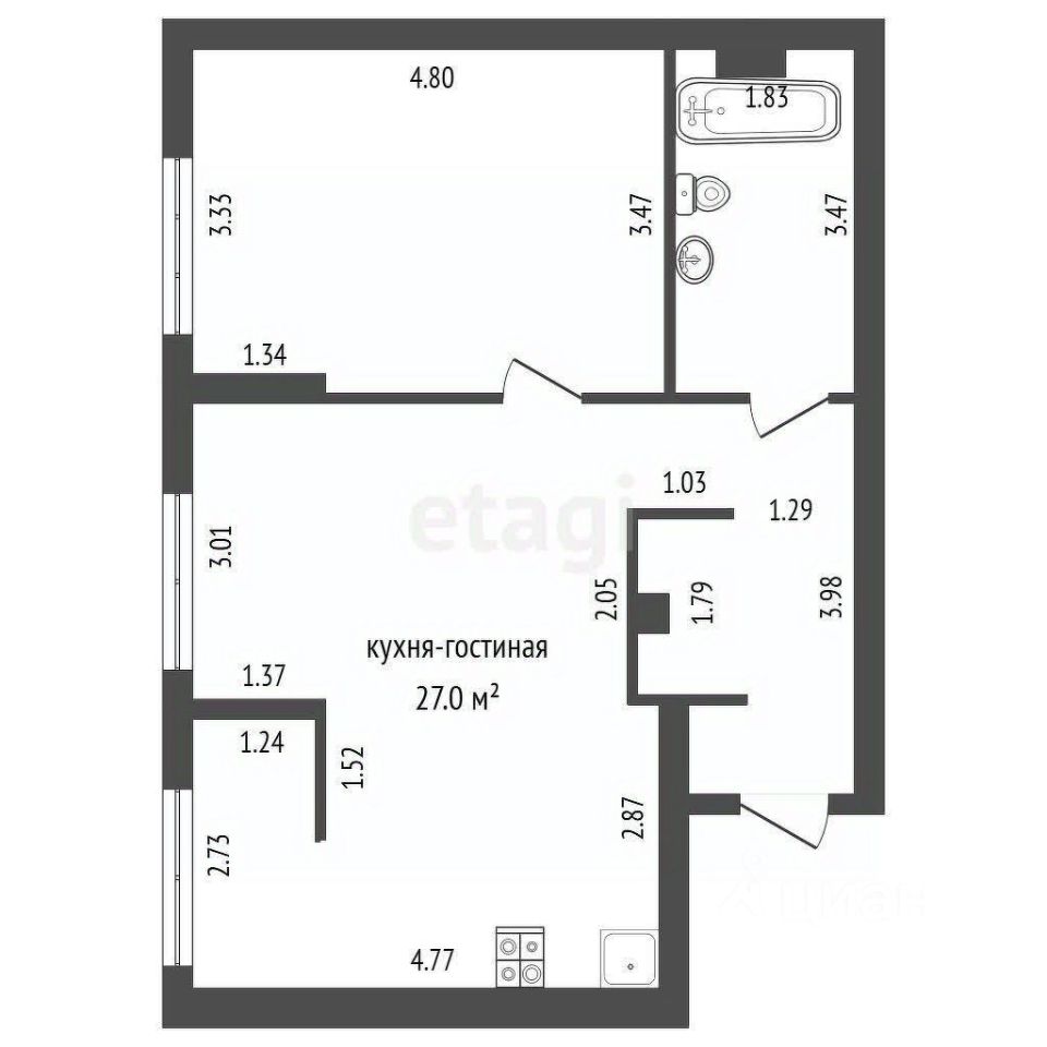 Тип квартиры: 1+ (отдельная спальня + кухня-гостиная)