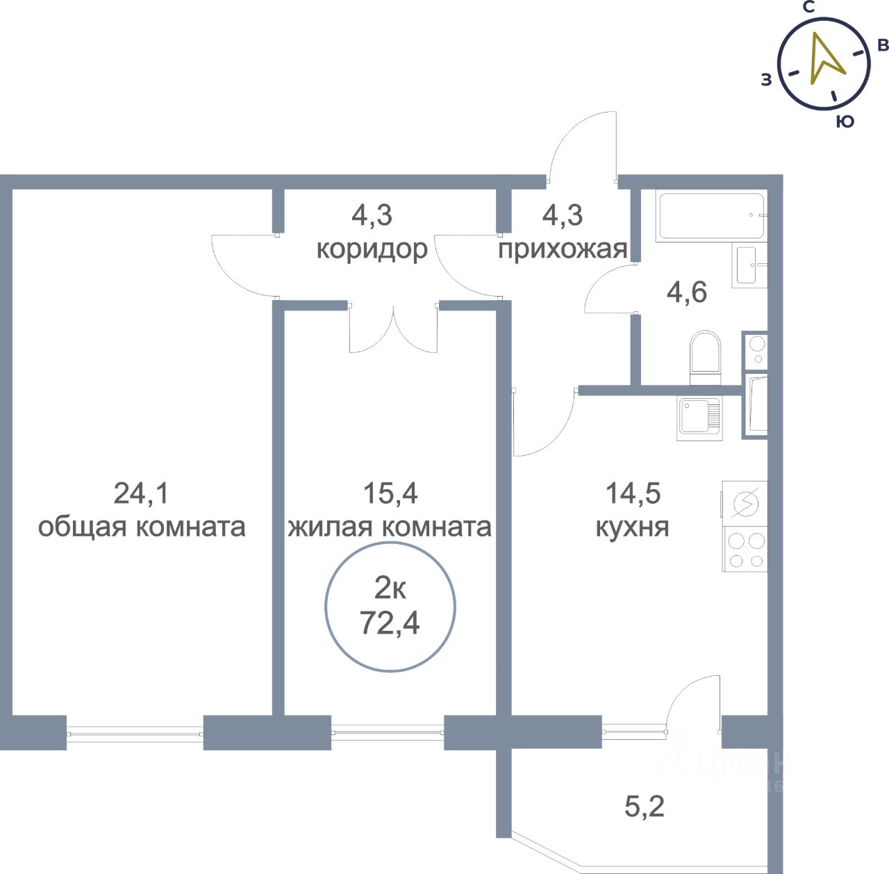 Общая площадь72,4 м²