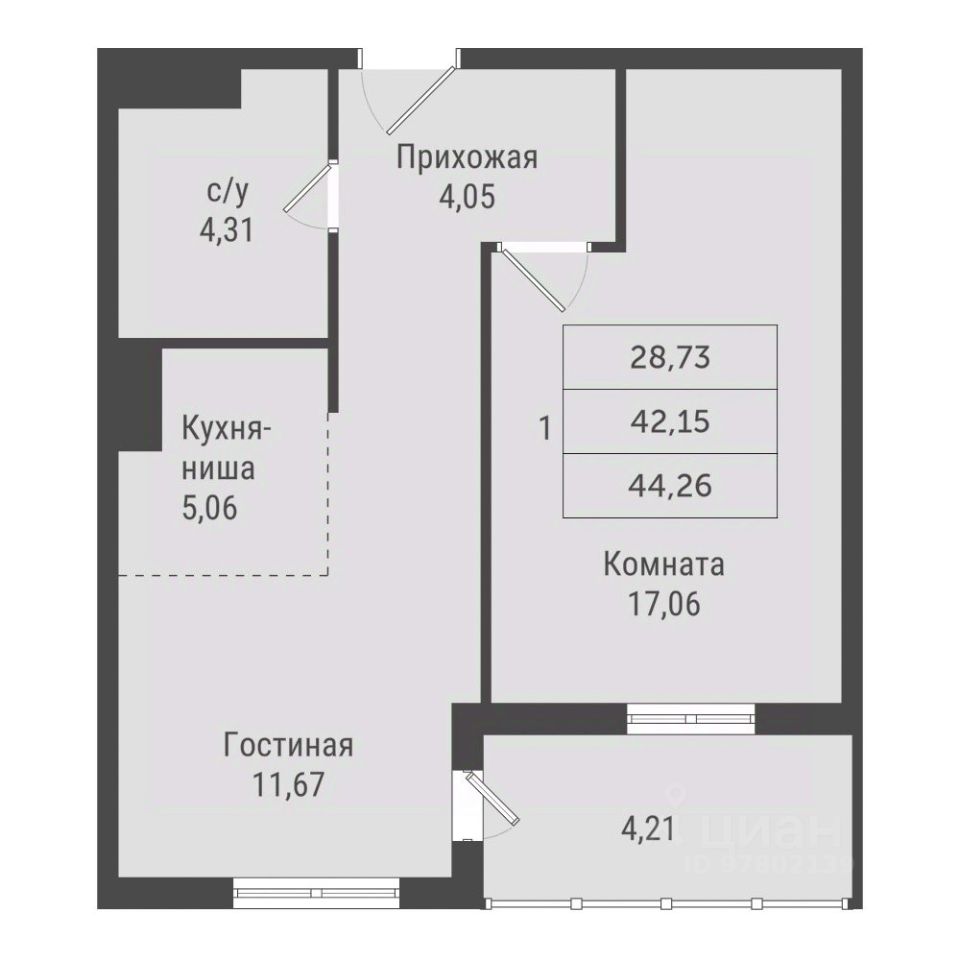 44,26 м²