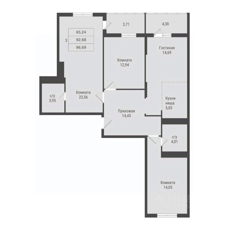 96,69 м²