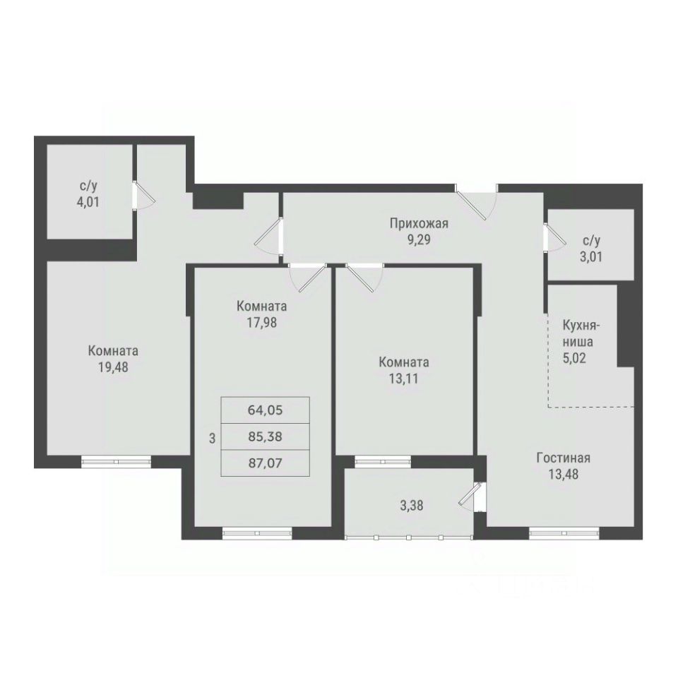 87,07 м²