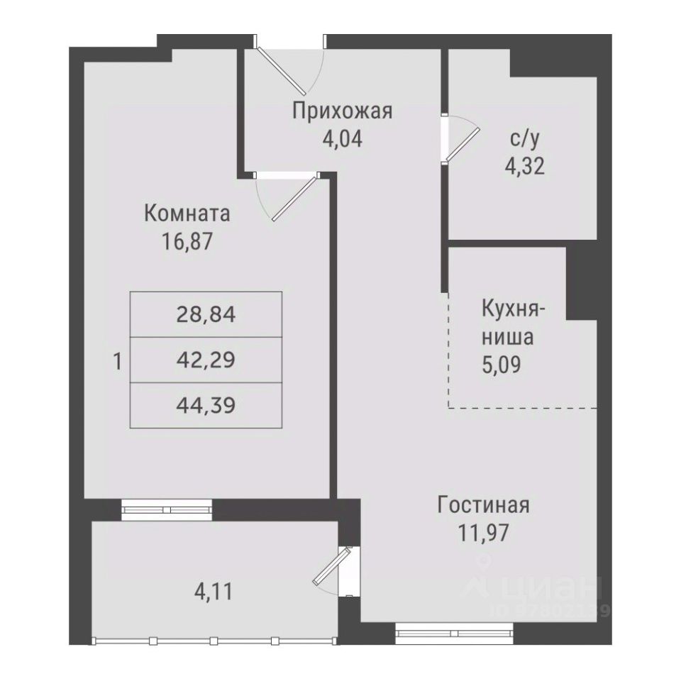 44,39 м²