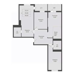 Продаётся 3-комнатная квартира в строящемся доме (2 этап), срок сдачи: III-кв. 2026, общей площадью 96.69 кв.м., на 14 этаже. Новый жилой комплекс "City Park" от Группы компаний "ЗапСибИнтерСтрой" расположен в 51 микрорайоне г. Сургут Ханты-Мансийского АО на ул. Игоря Киртбая.