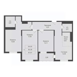 87,07 м²