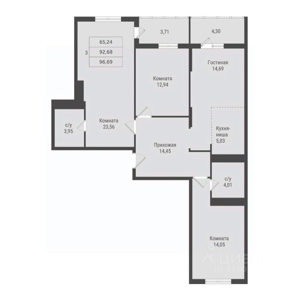 96,69 м²