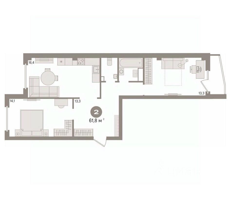 Главный плюс данной планировки - окна , выходящие на разные стороны.