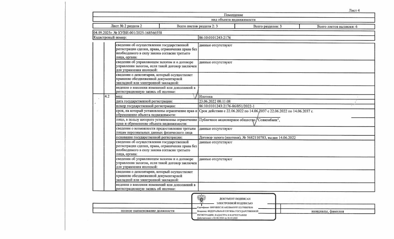 Должник: Мучипов С.З., собственник: Мучипов С.З., Мучипова С.Г. Лот: Жилое помещение (квартира), площадь 54,8 кв.м., кадастровый номер: 86:10:0101243:2176, г. Сургут, ул. Федорова, д. 59, кв. 171 (задолженность по капитальному ремонту на 19.08.2025г. - 8 т. р., информация о зарегистрированных лицах отсутствует), н/ц: 5018000 р, з-к: 5018 р., код: 0014, рег. 25-426;